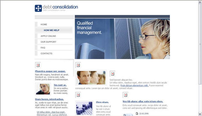 Financial Business Center Web site layout