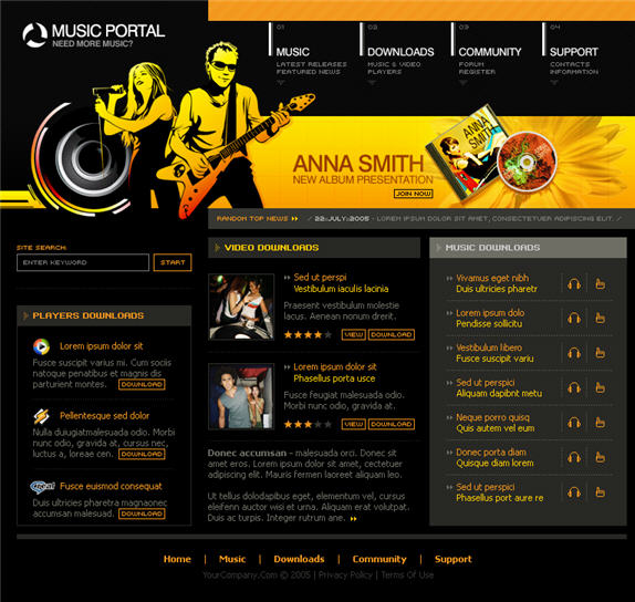 Music website templates
