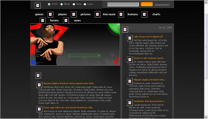Crazy music site layout