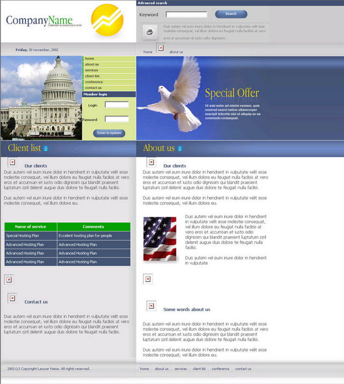 Commercial Web site's page layout template 2psd, html, fonts