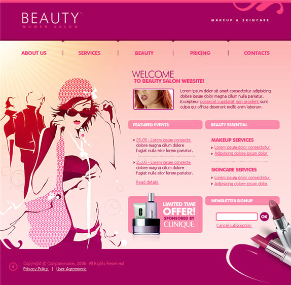 Pink female cosmetics website templates
