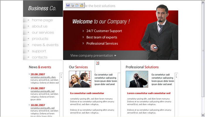 Commercial company's Web site page template