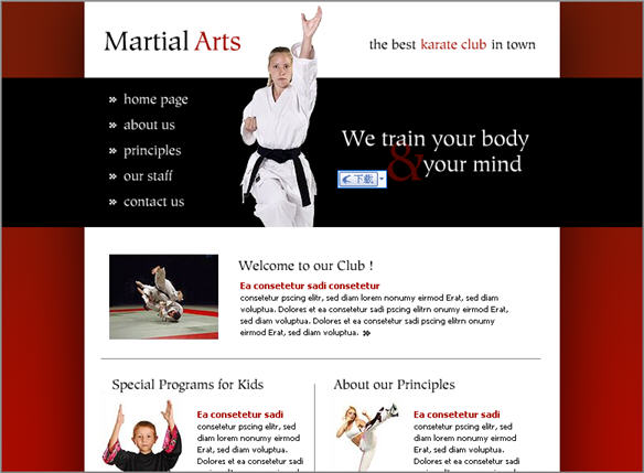 Taekwondo Sports Center Web site interface